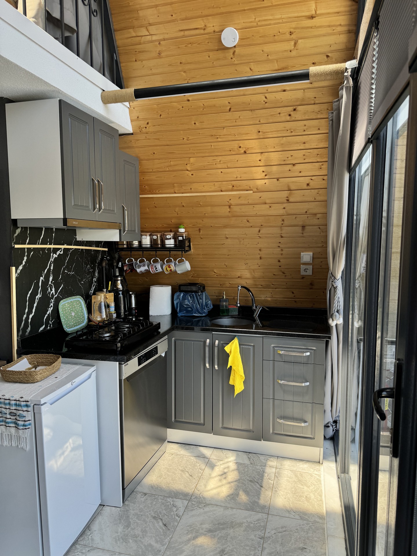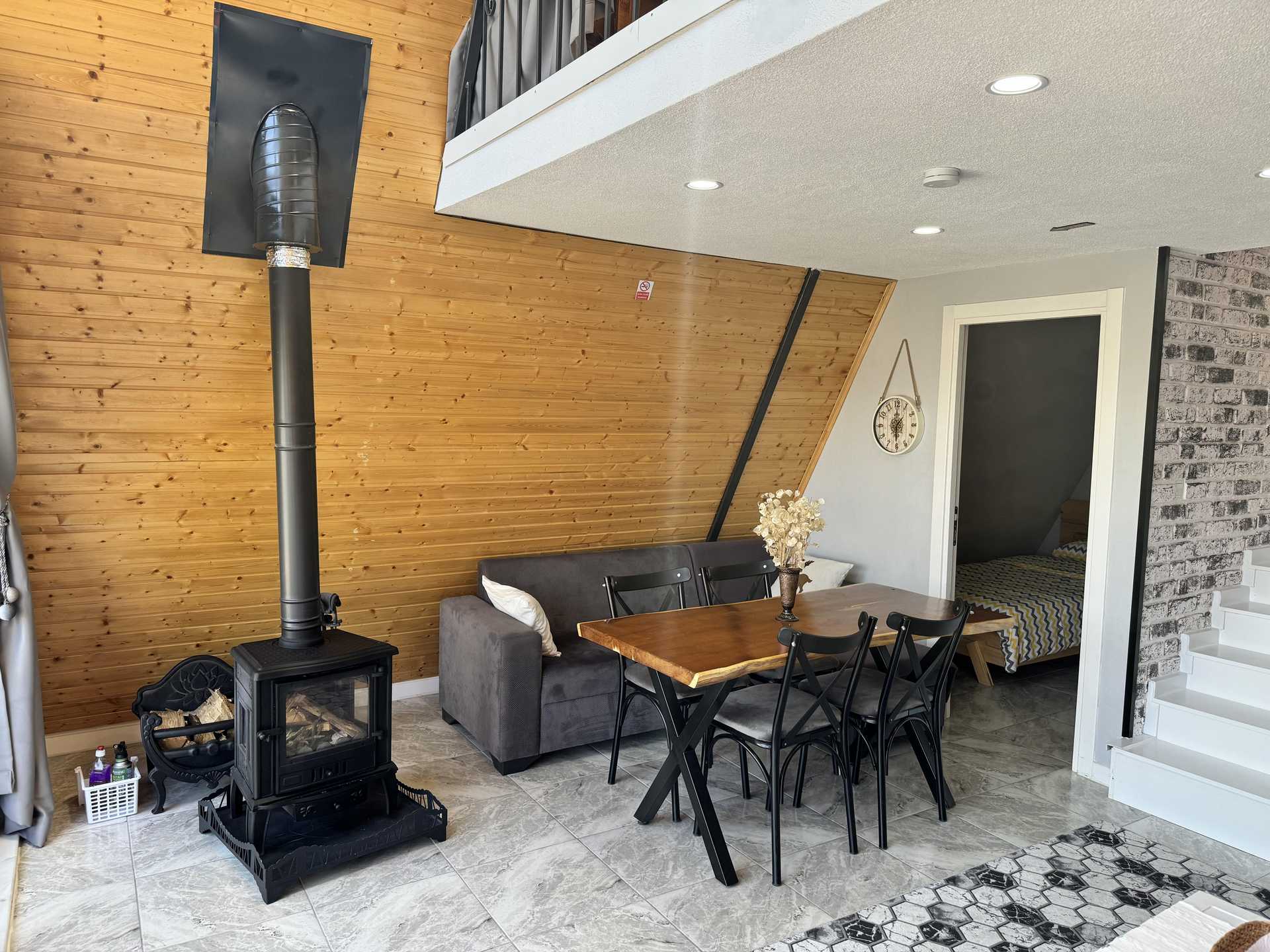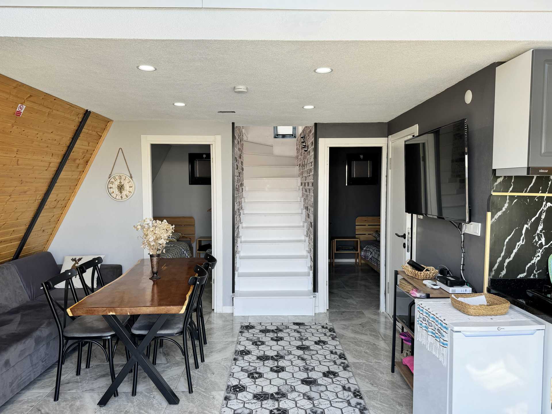 Alt katta birer kişilik iki ayrı yatak odası salonda ise bir kişinin yatabileceği koltuk mevcut ve ortak kullanım için için banyomuz,yerden ısıtma,şömine soba ve klimamız mevcuttur...